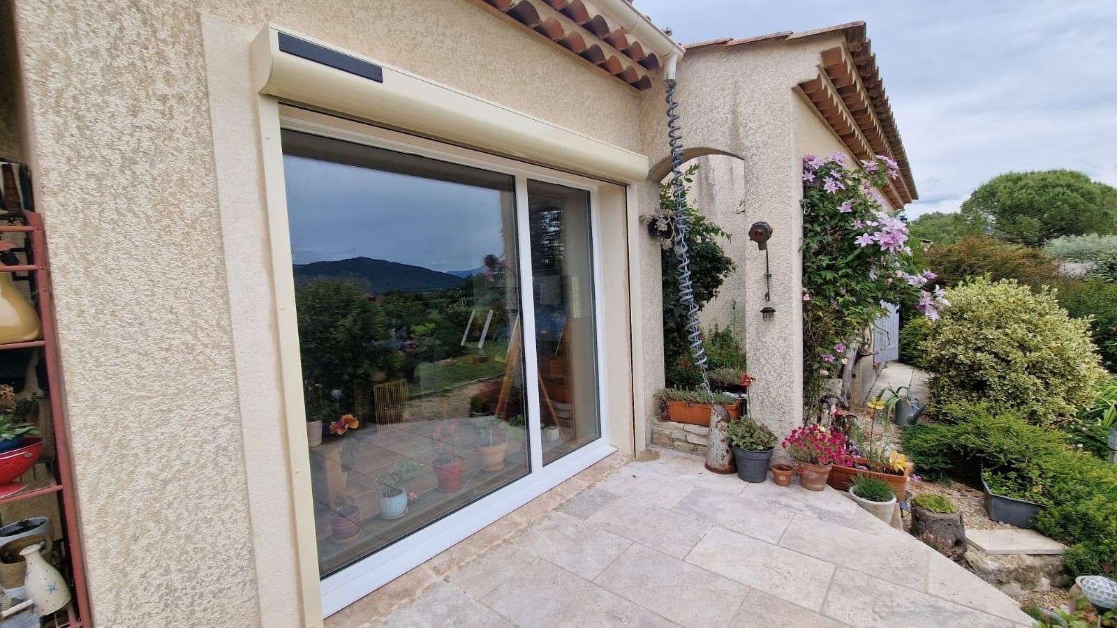 Cette grande ouverture a été complétée par un volet roulant solaire pour plus de confort.