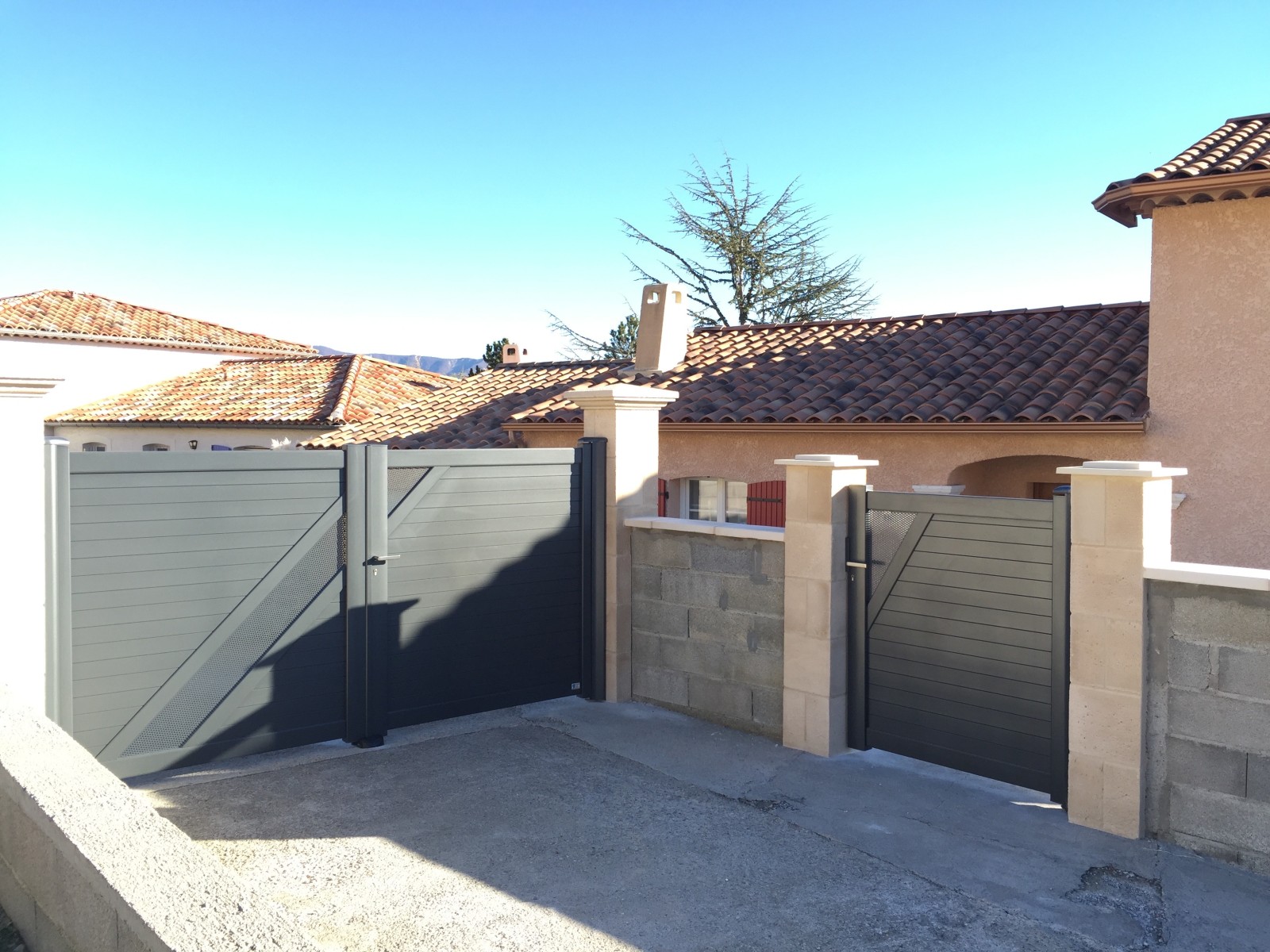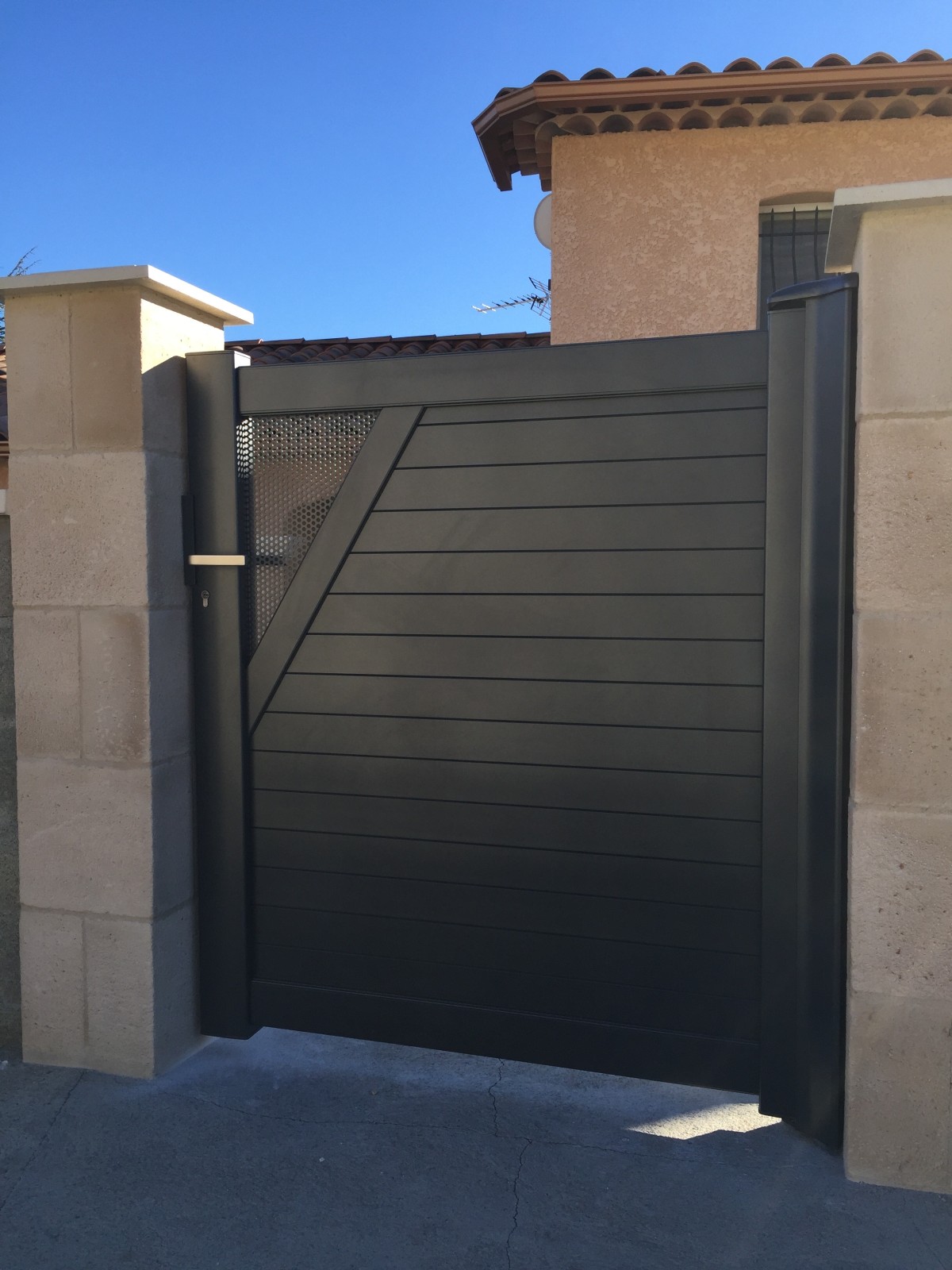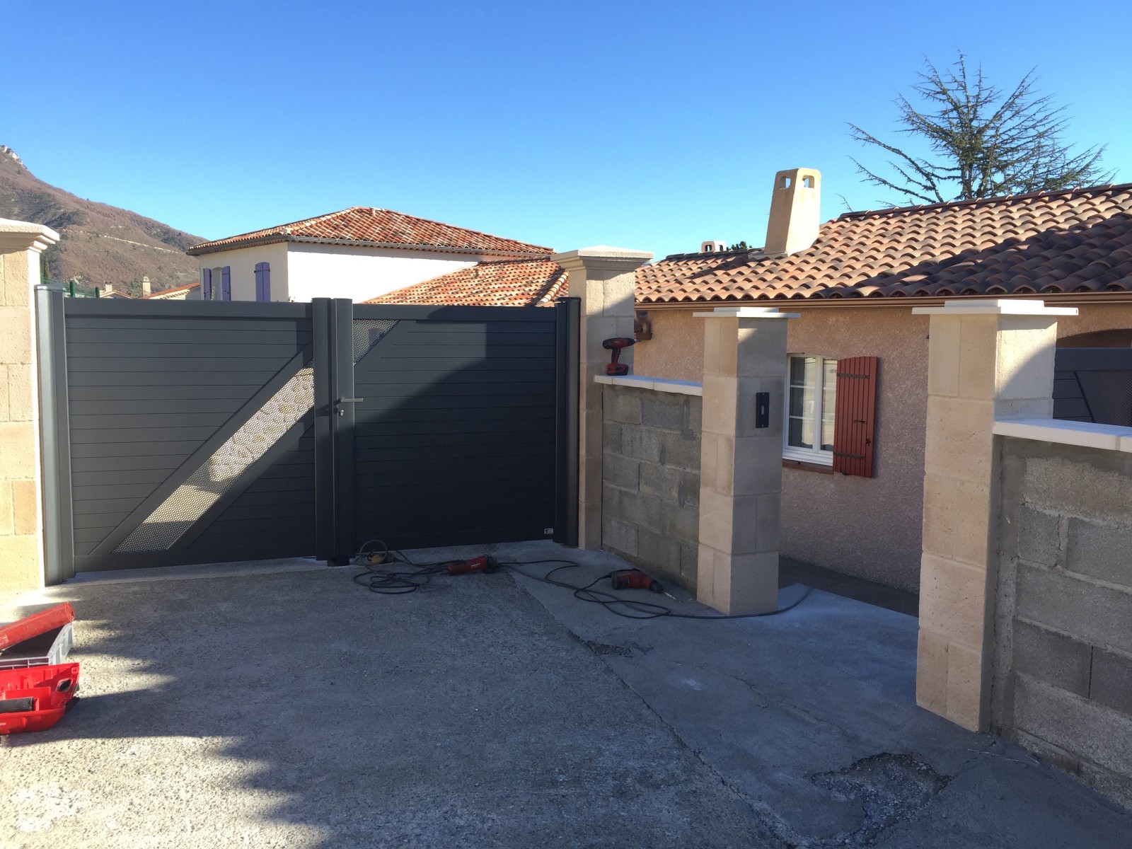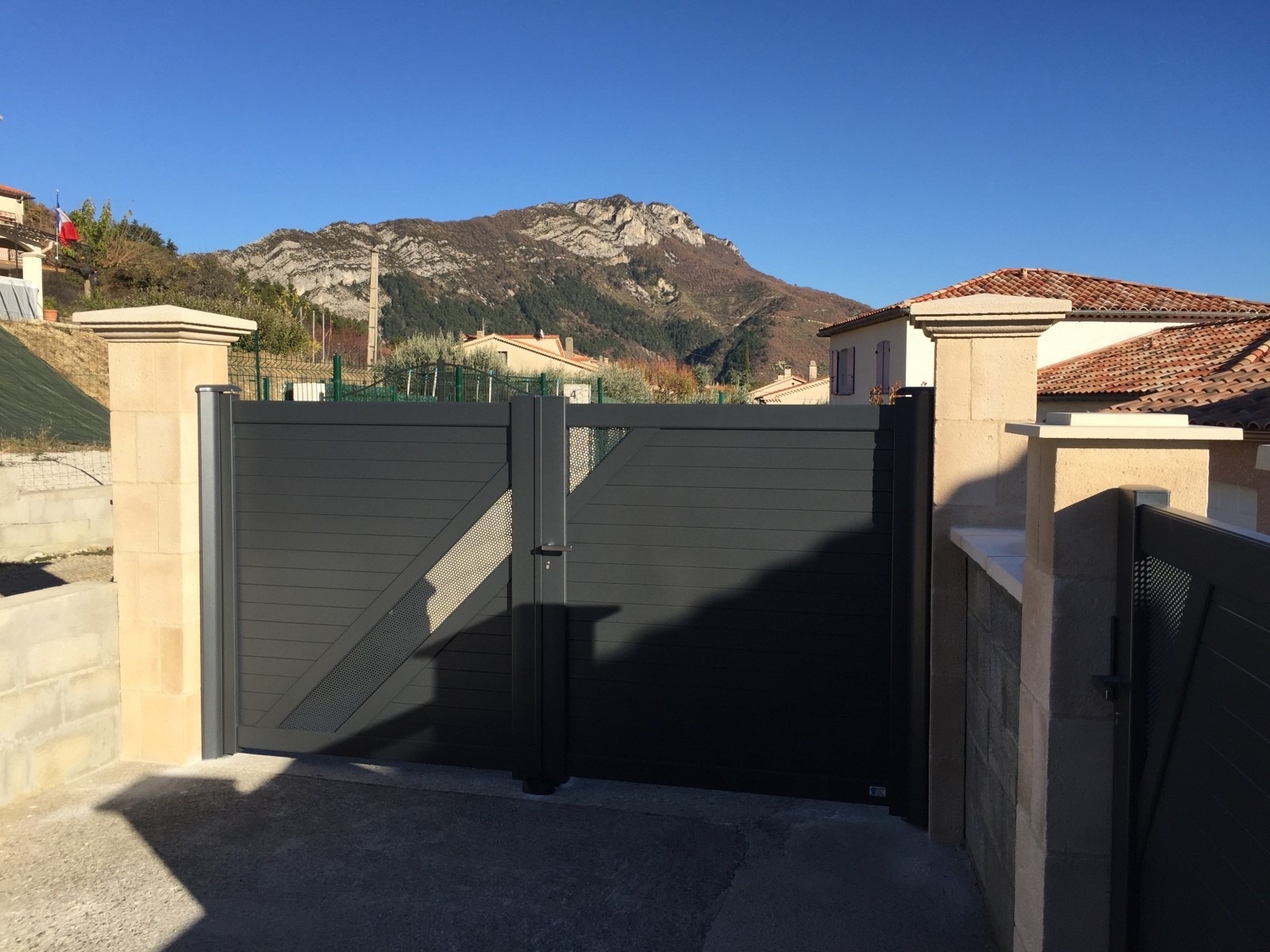 Installation d'un portail en aluminium de couleur gris anthracite sur la commune de SISTERON.