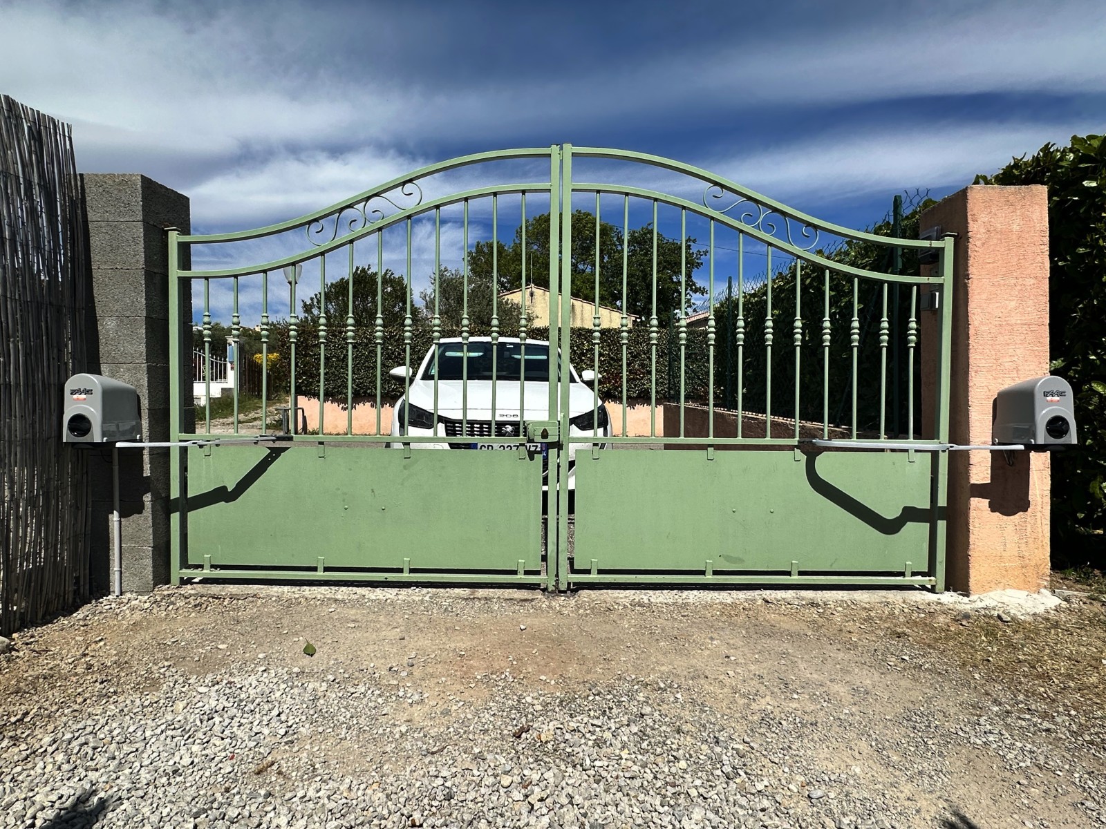 Installation d'une motorisation de portail battant FAAC 391 sur un portail en acier existant proche de Manosque dans les Alpes de Haute Provence.