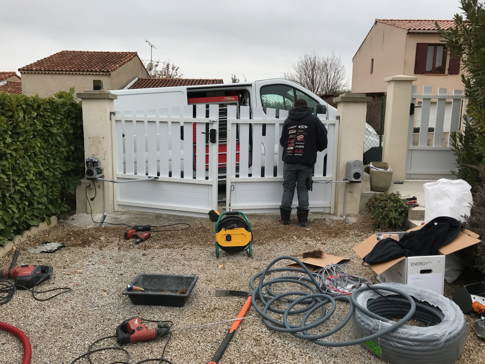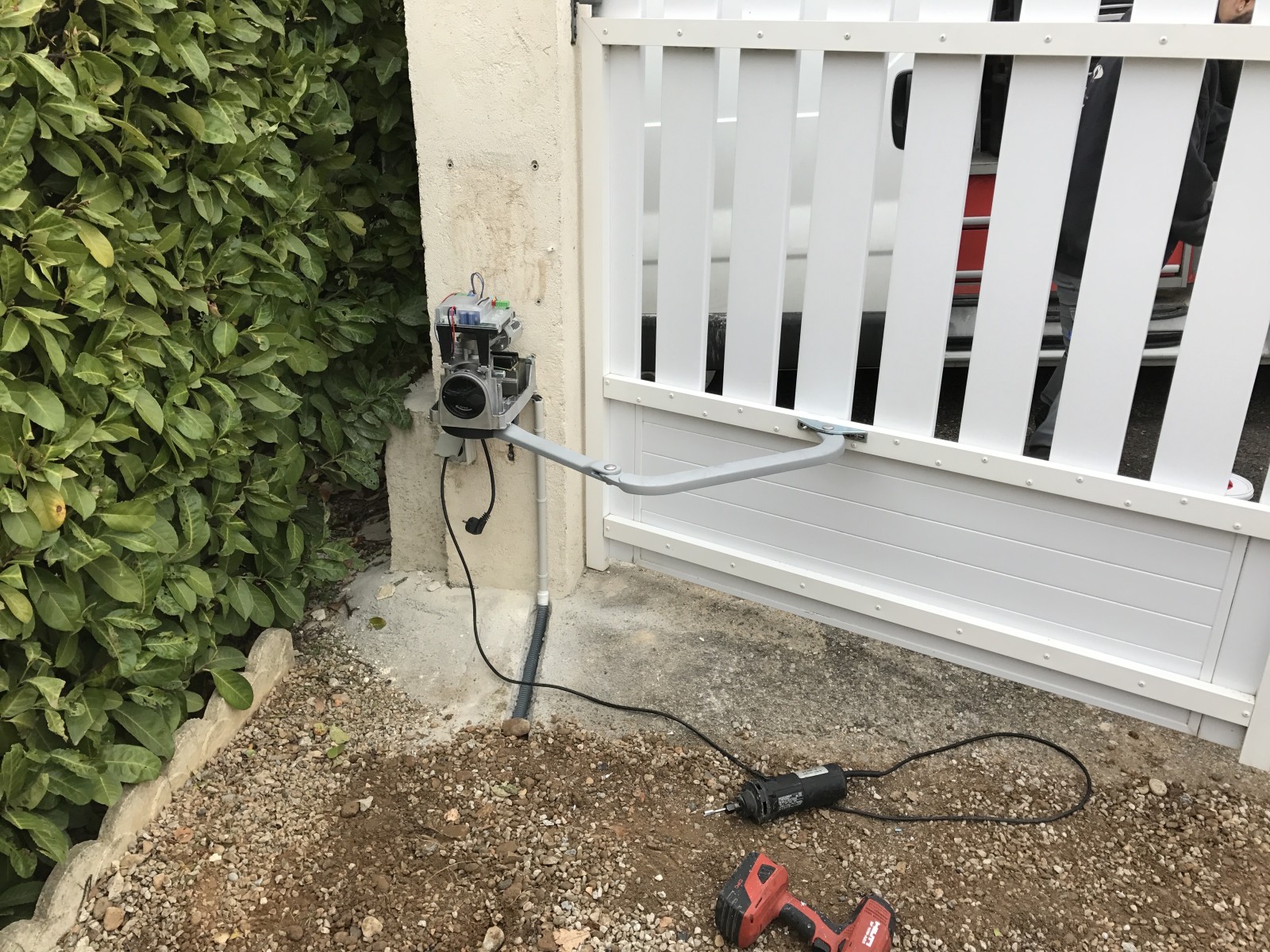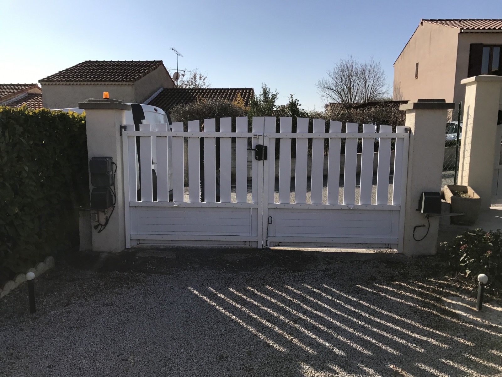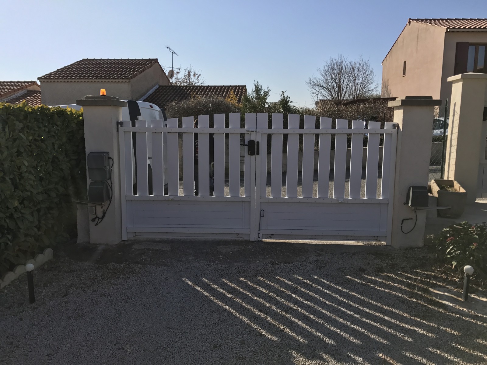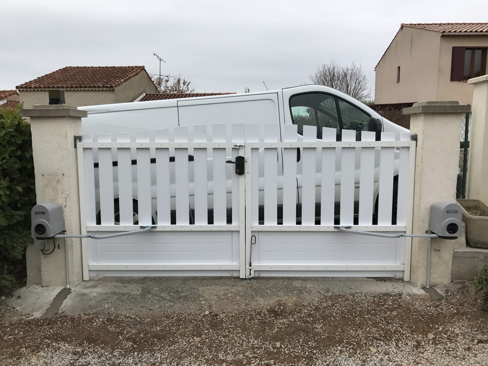 Installation d'un portail motorisé en pvc par Arnault Danaus société se situant sur Peyruis